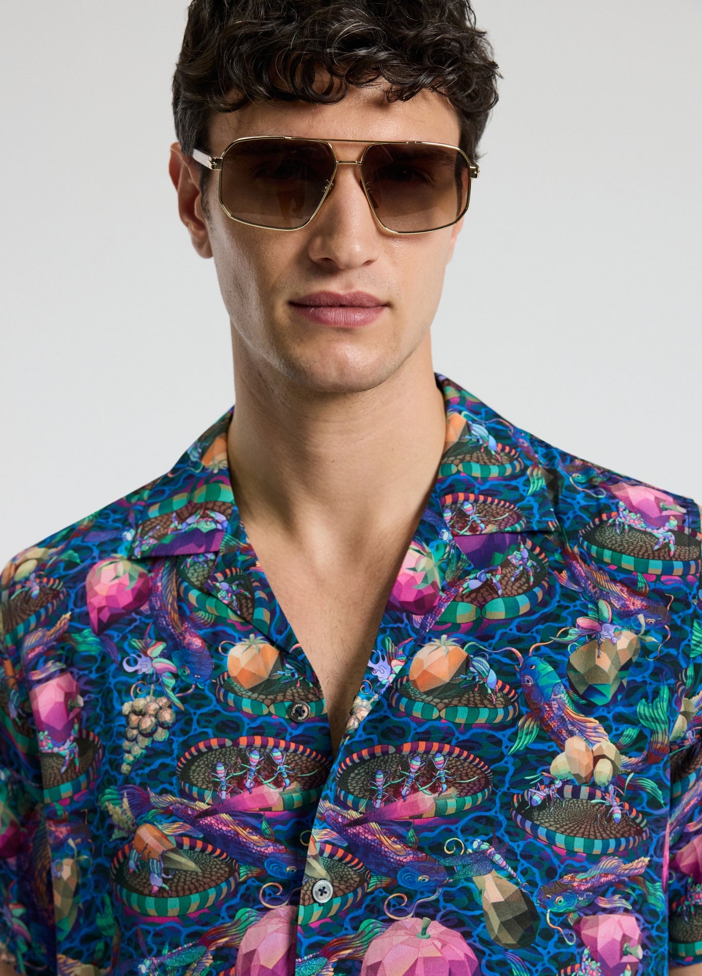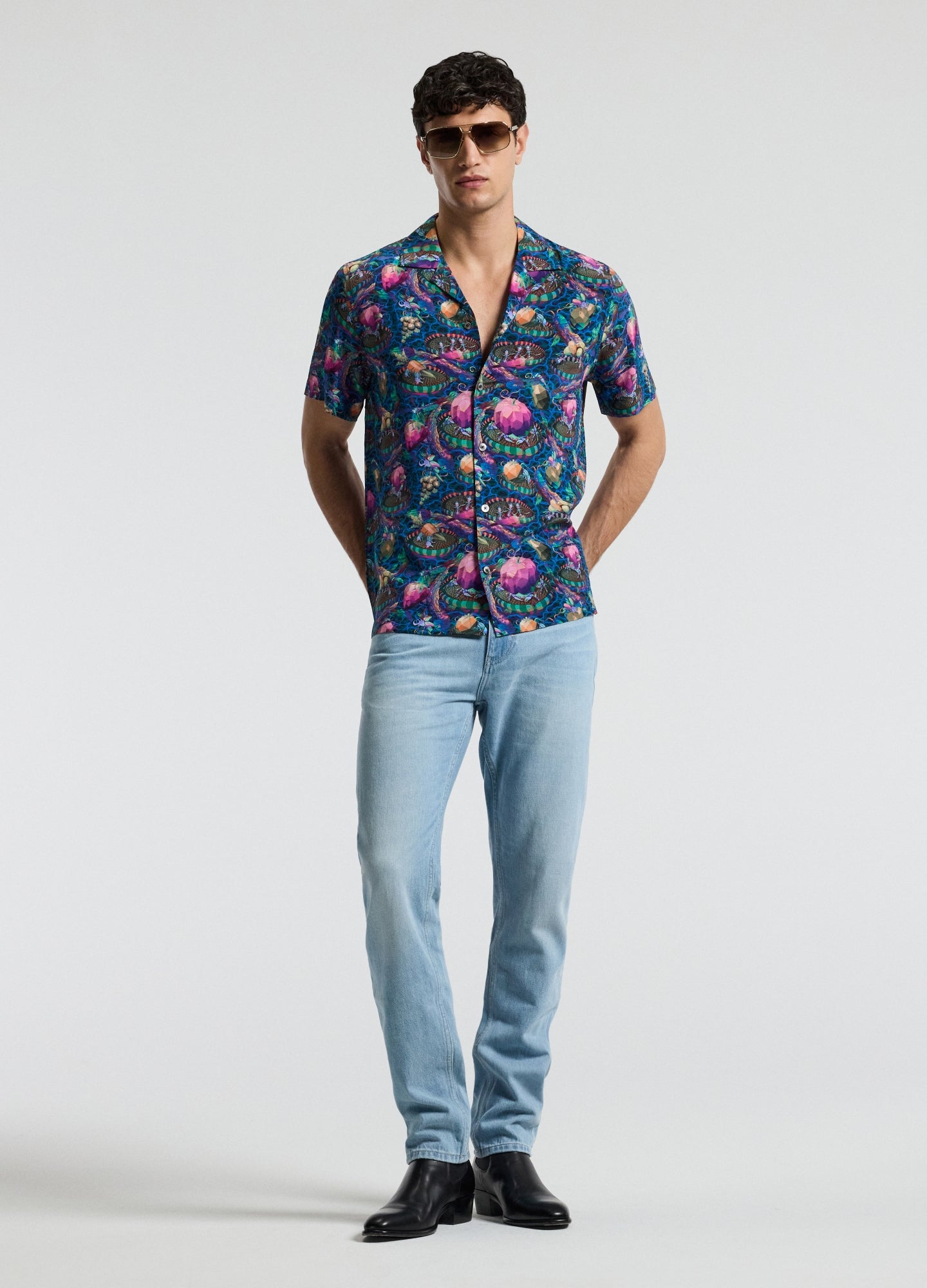 Aquatic Universe Short Sleeve Silk Shirt Aegean Blue