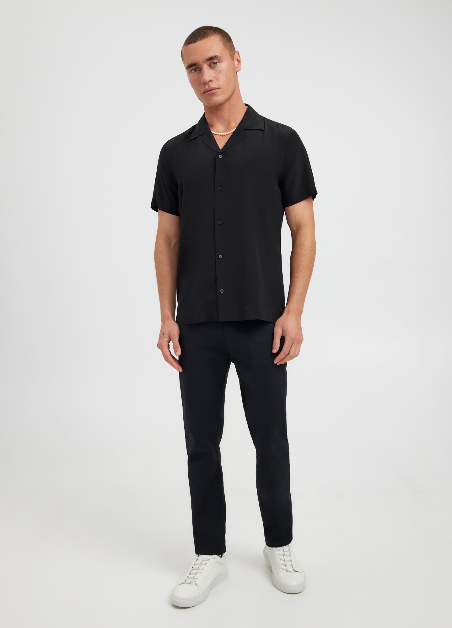 Made from pure silk Crepe-de-Chine fabric with soft texture, this Camp Collar Silk Short Sleeve Shirt has luxurious feel and elegant drape. Tailored in relaxed fit camp collar style, this versatile shirt is perfect to wear for parties, holidays and smart casual occasions. Redefine your wardrobe with this exquisite piece that embodies timeless charm and modern flair.