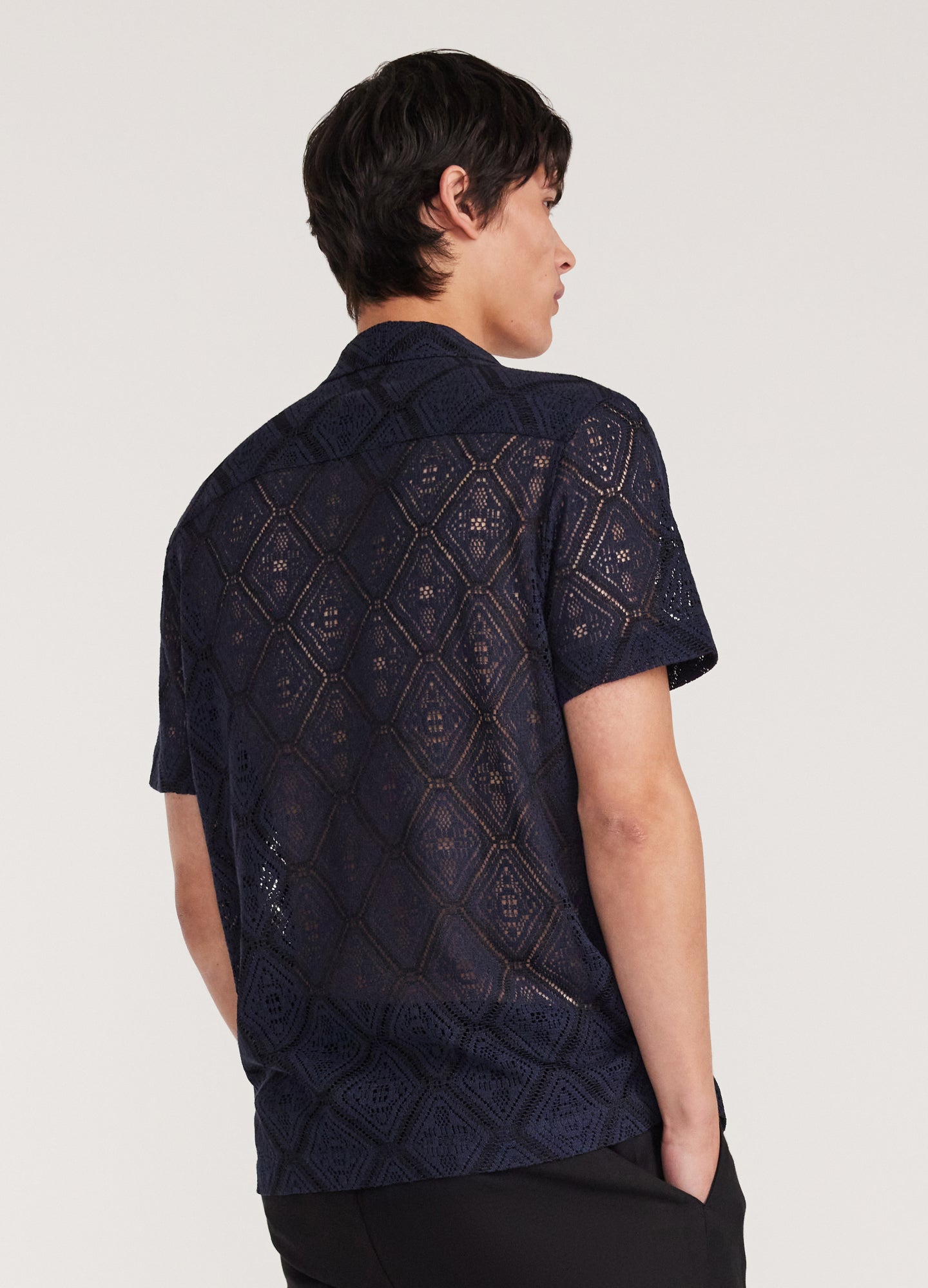 Duo Tone Lace Short Sleeve Shirt Navy