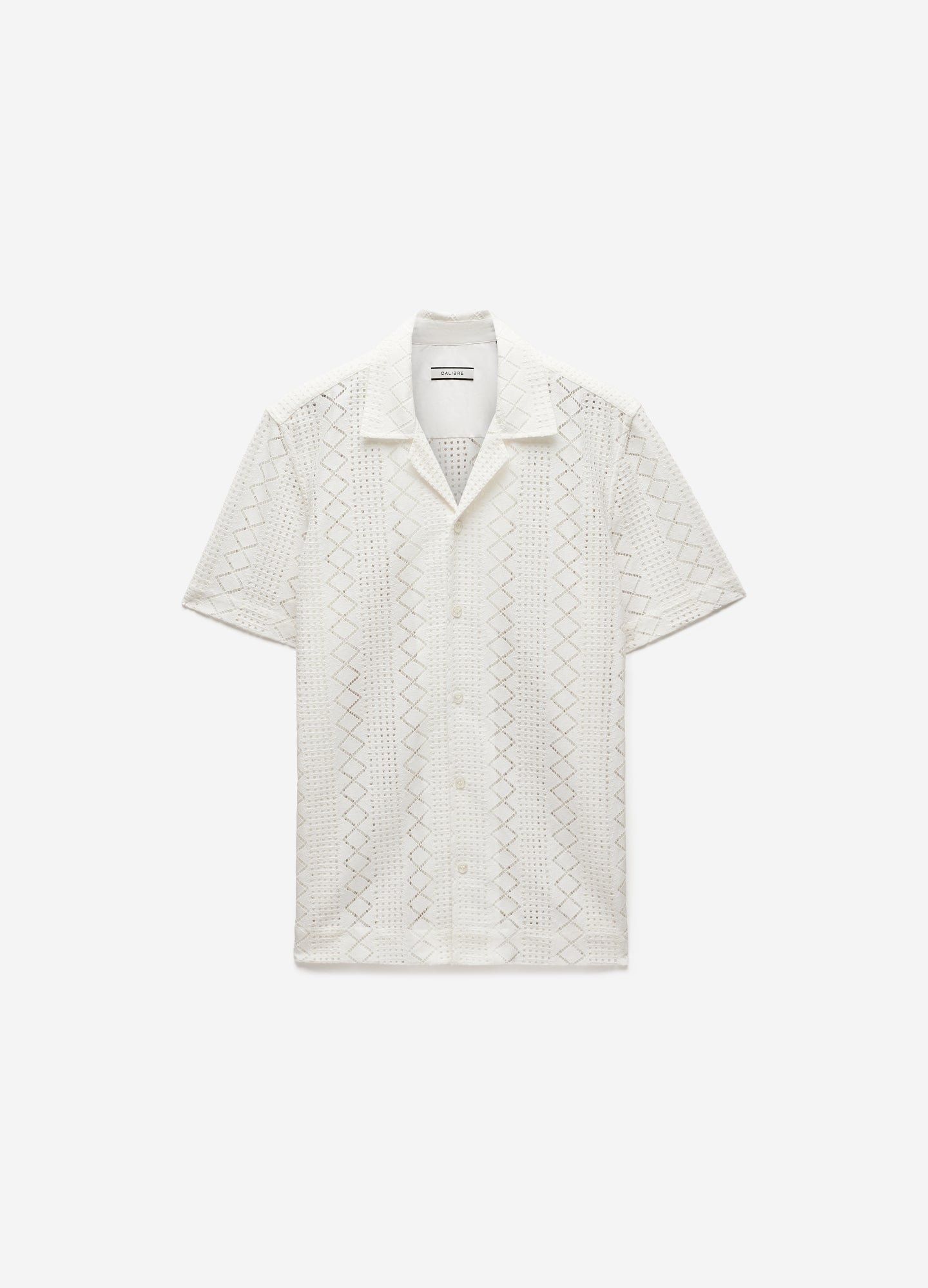 The Geometric Lace Short Sleeve shirt is constructed from lace with an open camp collar neck. Pairing perfectly with our tailored trousers or linen drawstring pants, it can be dressed up or down with ease.