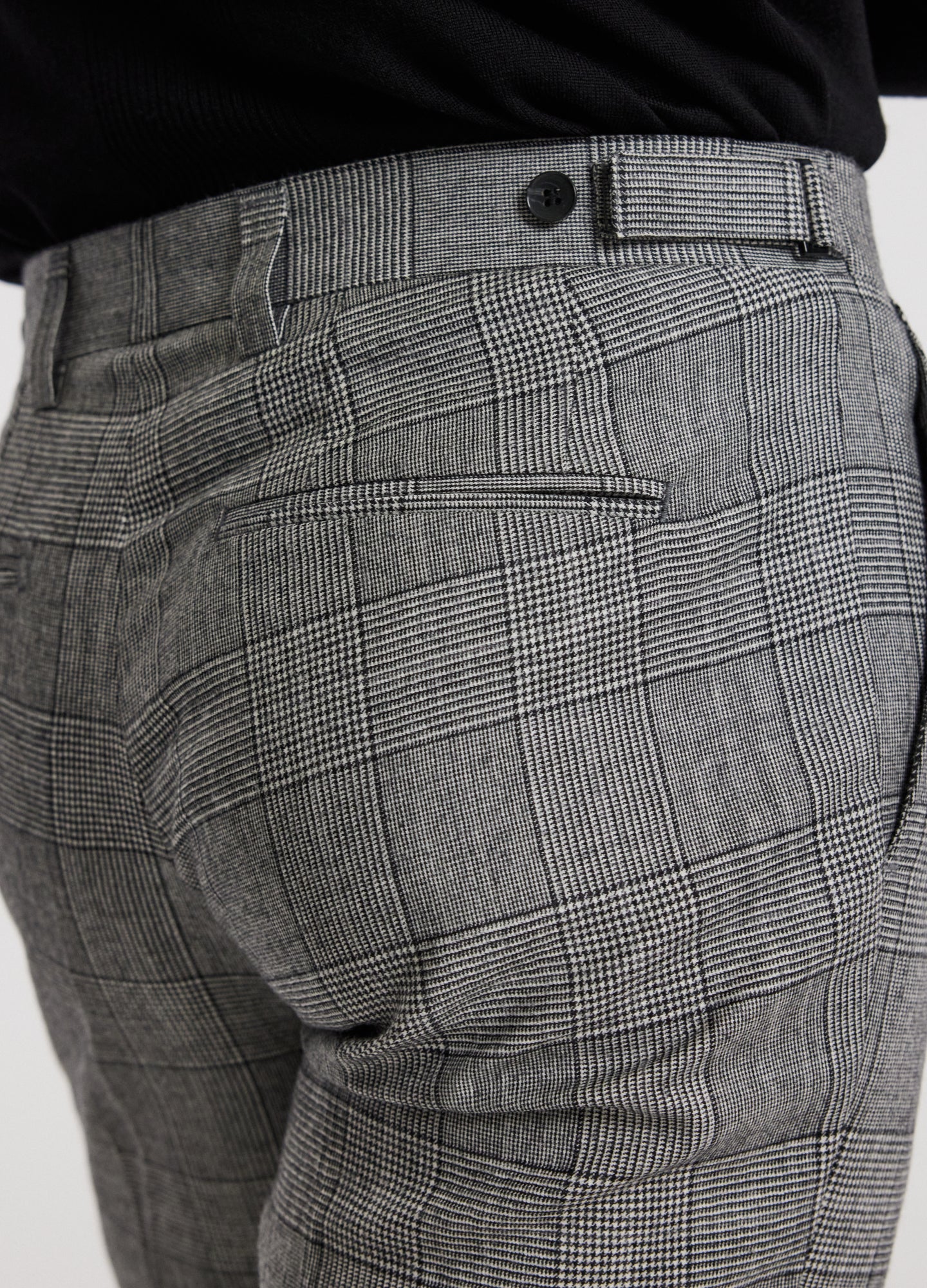 - Checked pure Merino wool fabric with a lightly brushed surface finish