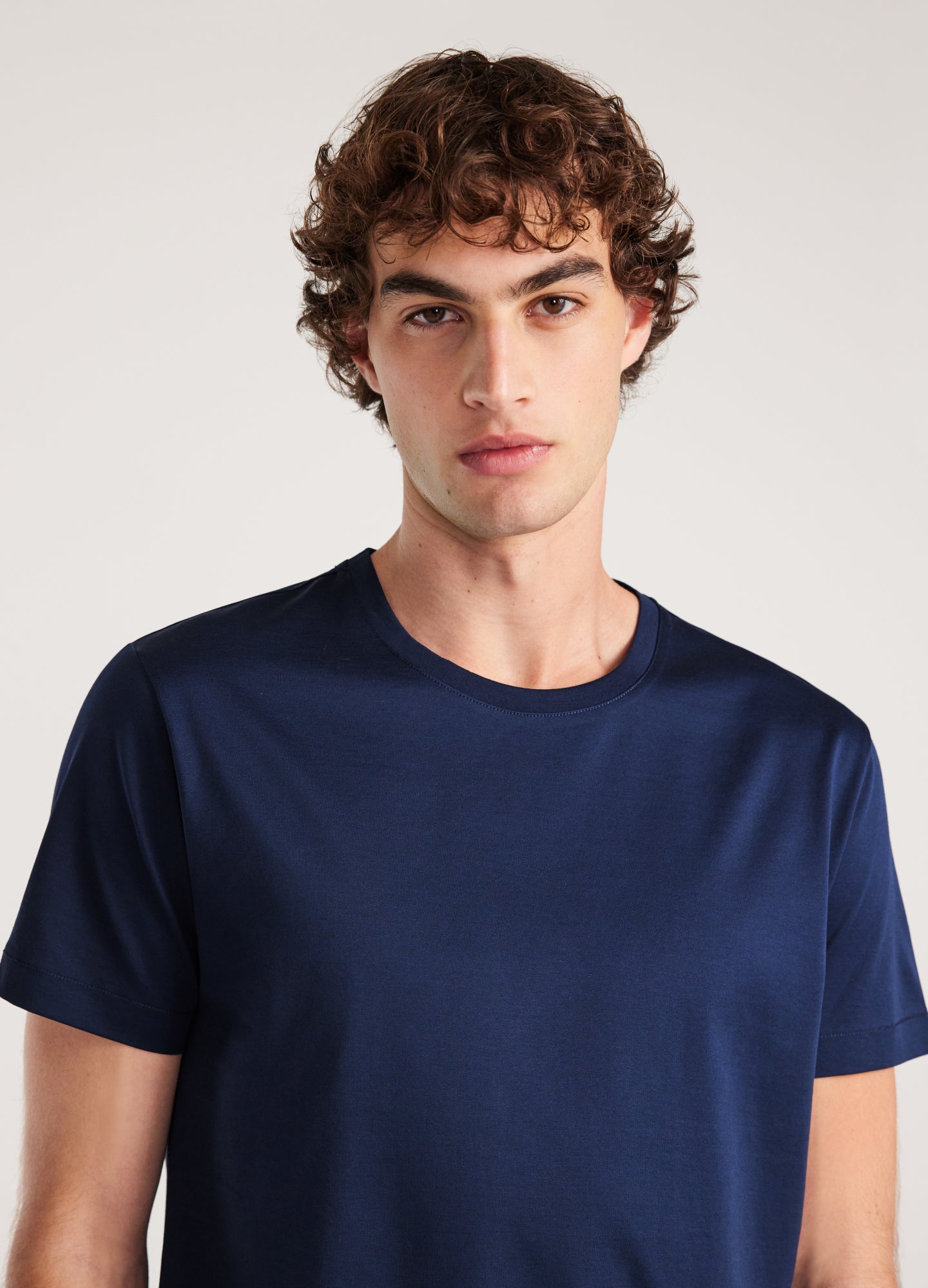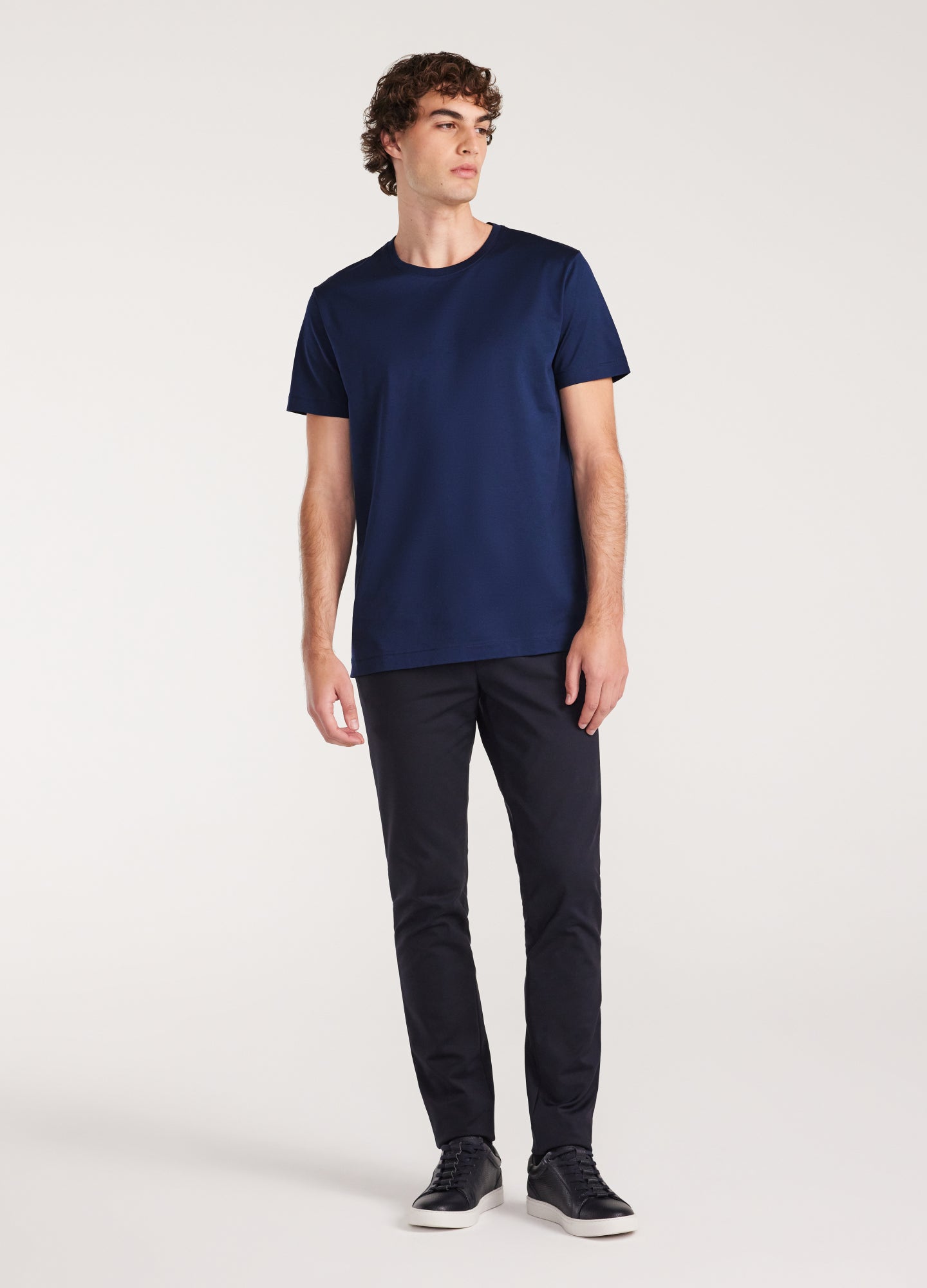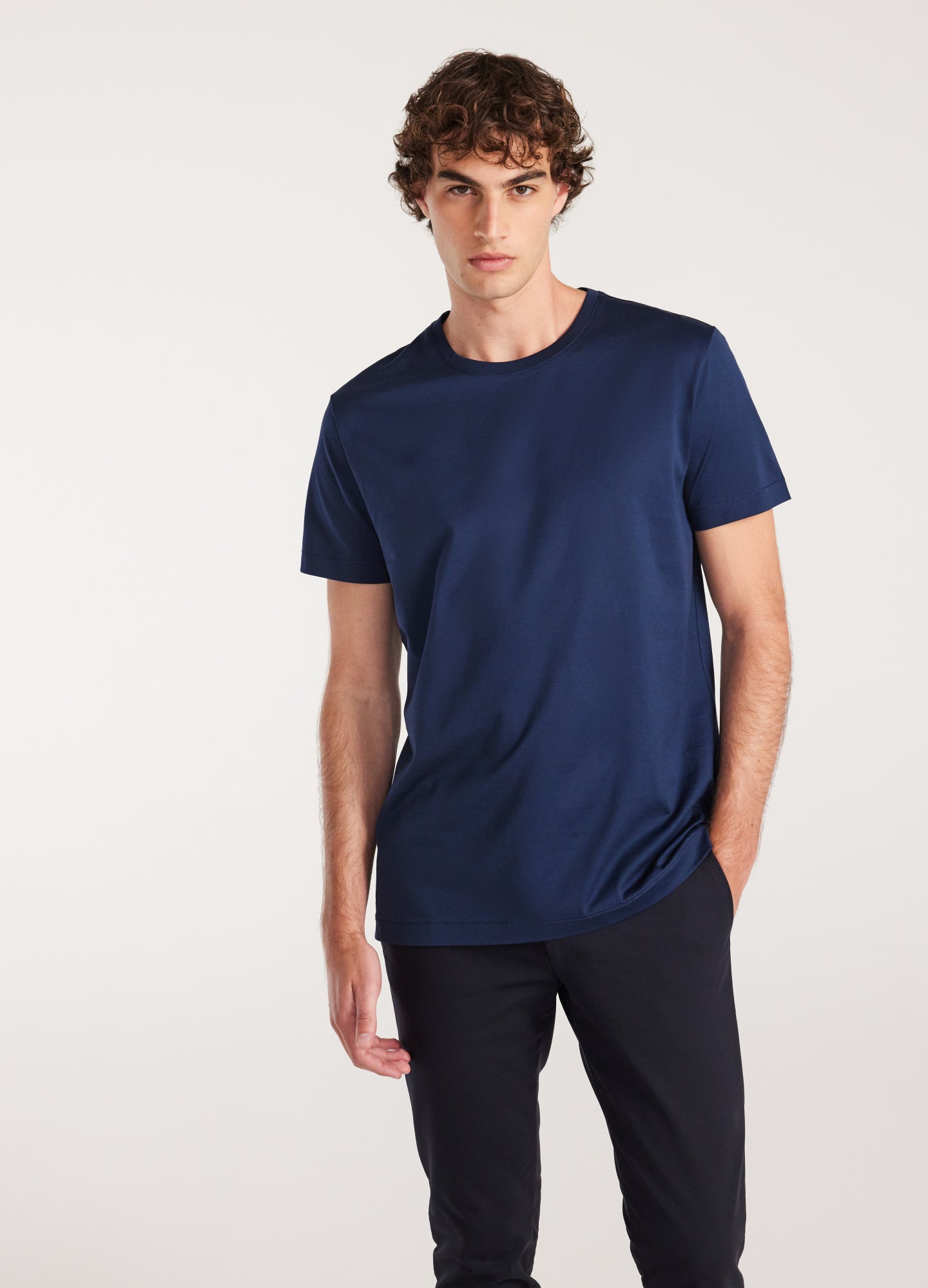 A wardrobe staple, the Mercerised Crew Neck T-shirt is crafted from a soft fabric and features a chain stitch on the cuffs and hem. Style it with chinos and sneakers for an effortless weekend look, or layer it under a blazer for a modern, work appropriate outfit.