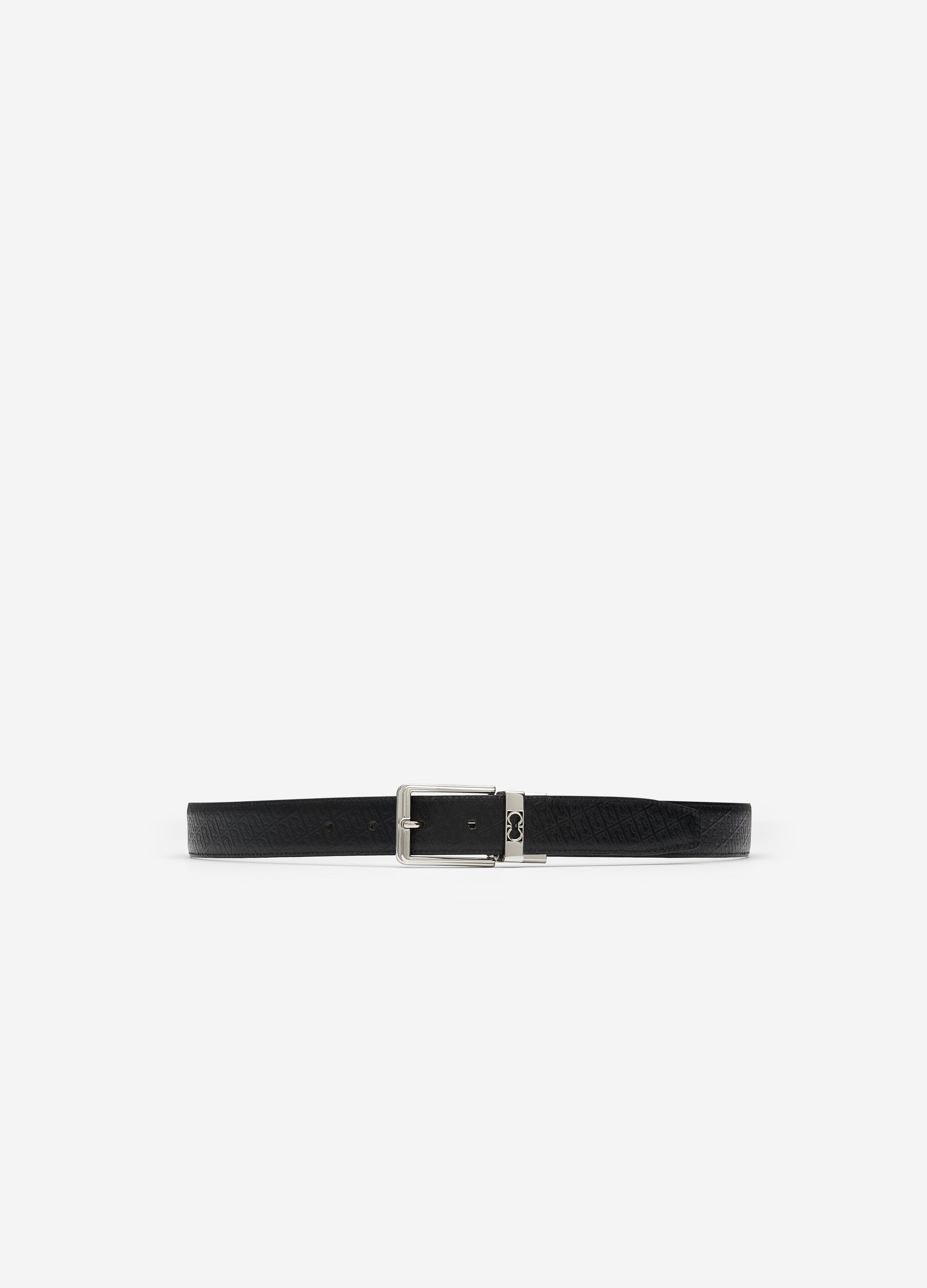 - Silver tone buckle fastening with cut-out monogram belt keeper