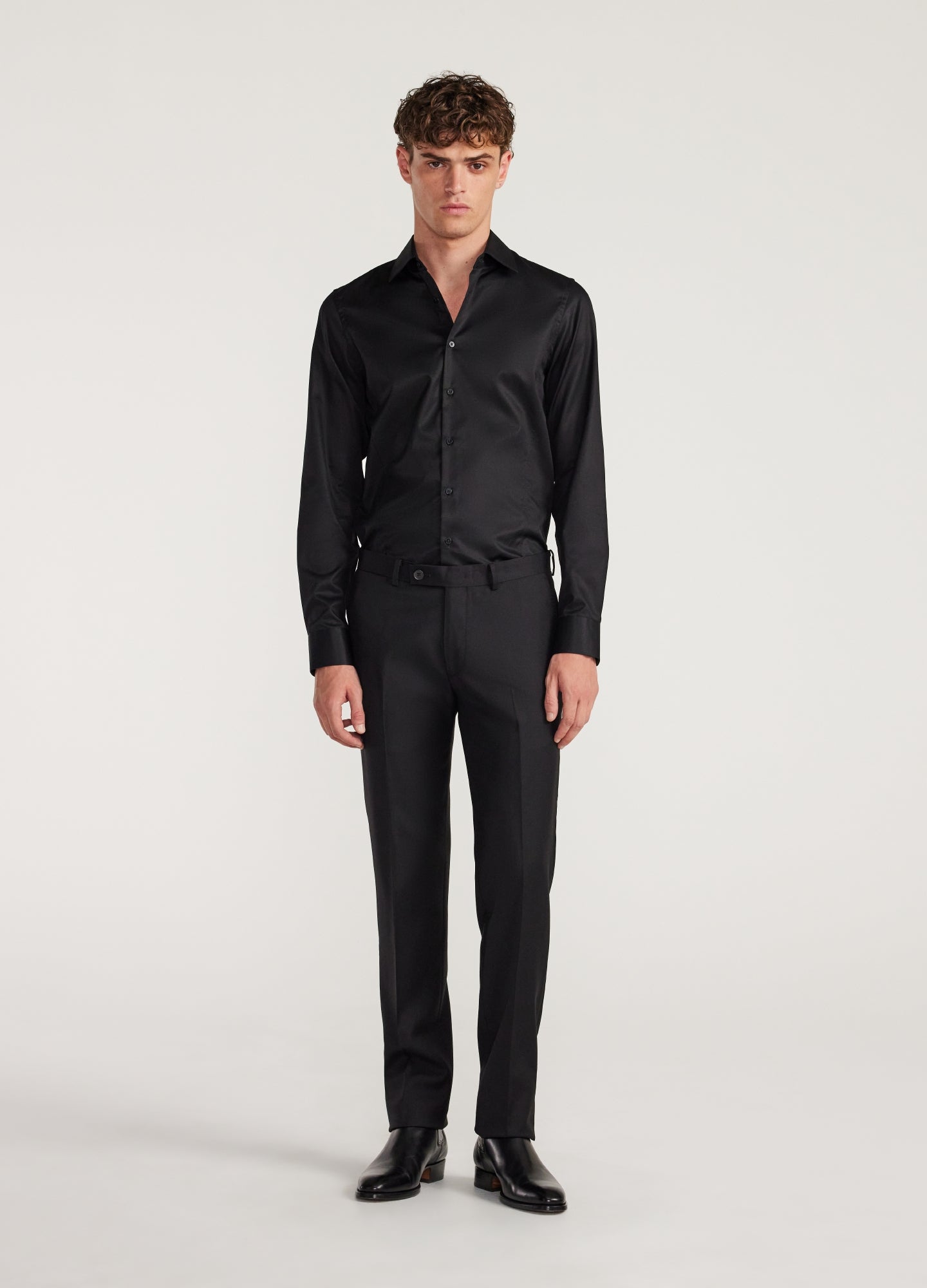 - Sartorial semi-spread collar with removable stays (can be worn open or with a bow tie)