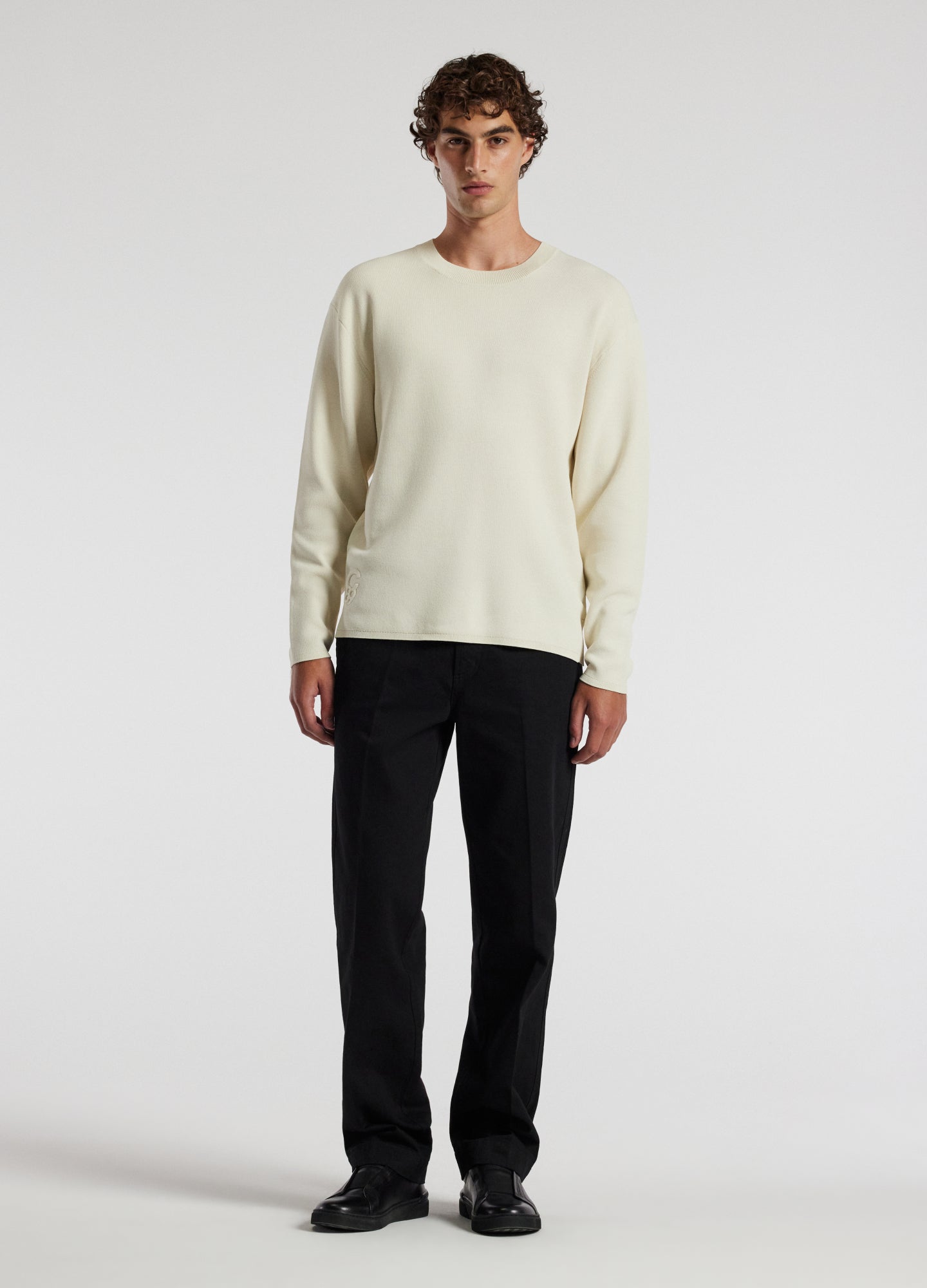 Knitwear: Relaxed Fit - Long Sleeve. Model measures: 188cm / 6'2". Model is wearing: Size M (40) 32 Waist.