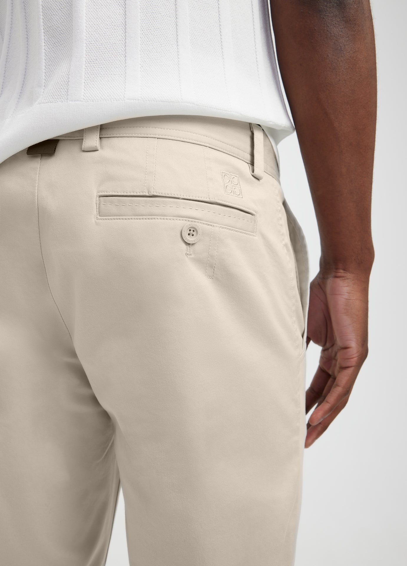 Our Slim Fit Cotton Stretch Chinos feature contemporary details such as contrast grosgrain tape loop at centre back waistband seam and angled welt pocket insert. Make them your go-to pants throughout the week and add them to your list of travel essentials. These chinos are easily paired with a shirt and blazer for a smart casual look or a basic t-shirt and bomber jacket for a relaxed style.