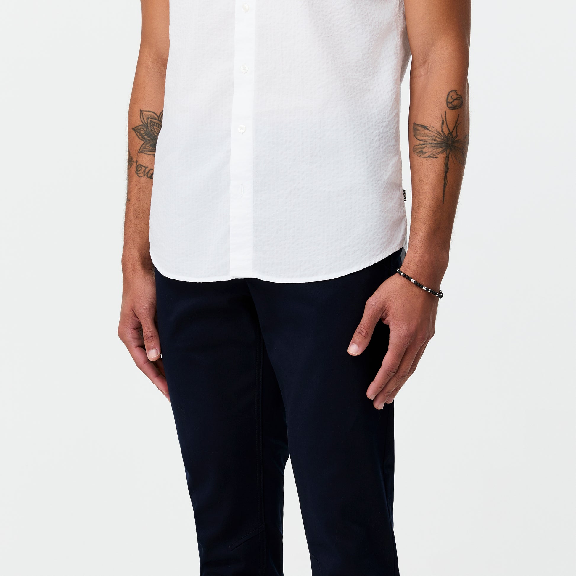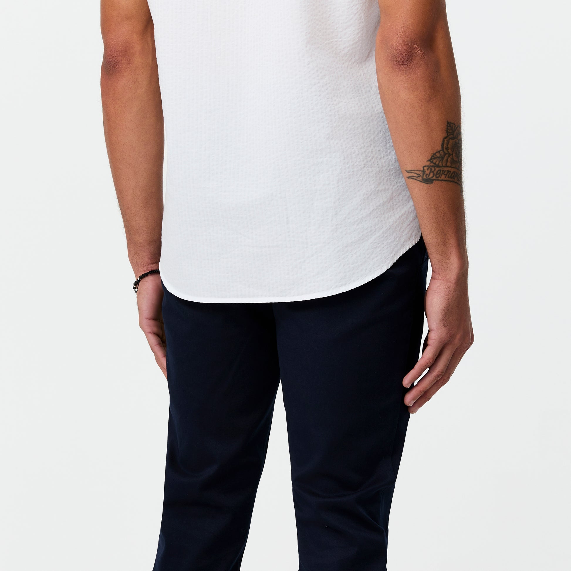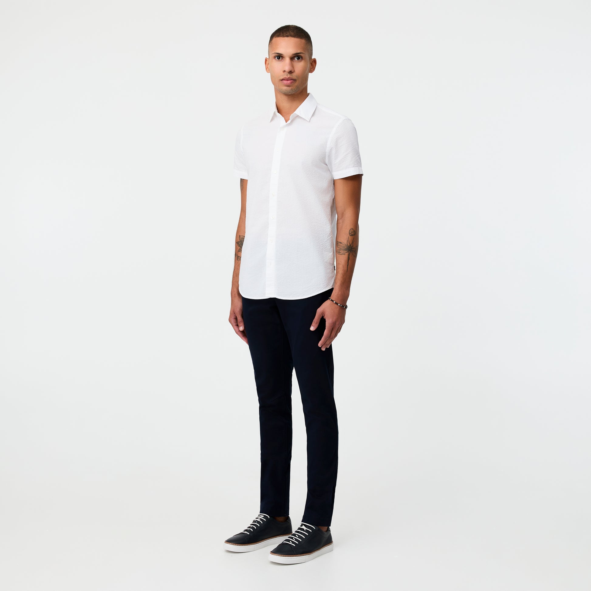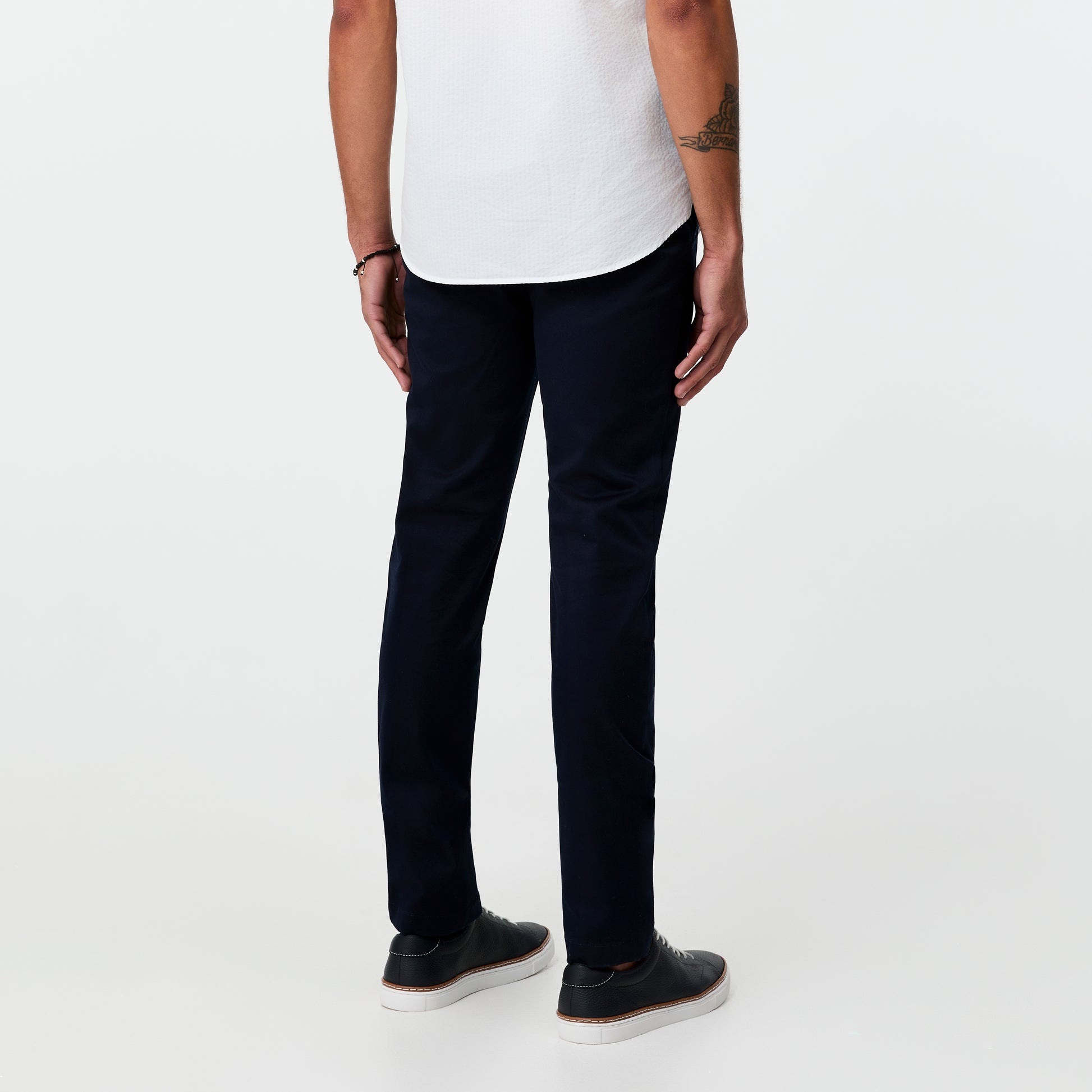 Our Slim Fit Cotton Stretch Chinos feature contemporary details such as contrast grosgrain tape loop at centre back waistband seam and angled welt pocket insert. Make them your go-to pants throughout the week and add them to your list of travel essentials. These chinos are easily paired with a shirt and blazer for a smart casual look or a basic t-shirt and bomber jacket for a relaxed style.