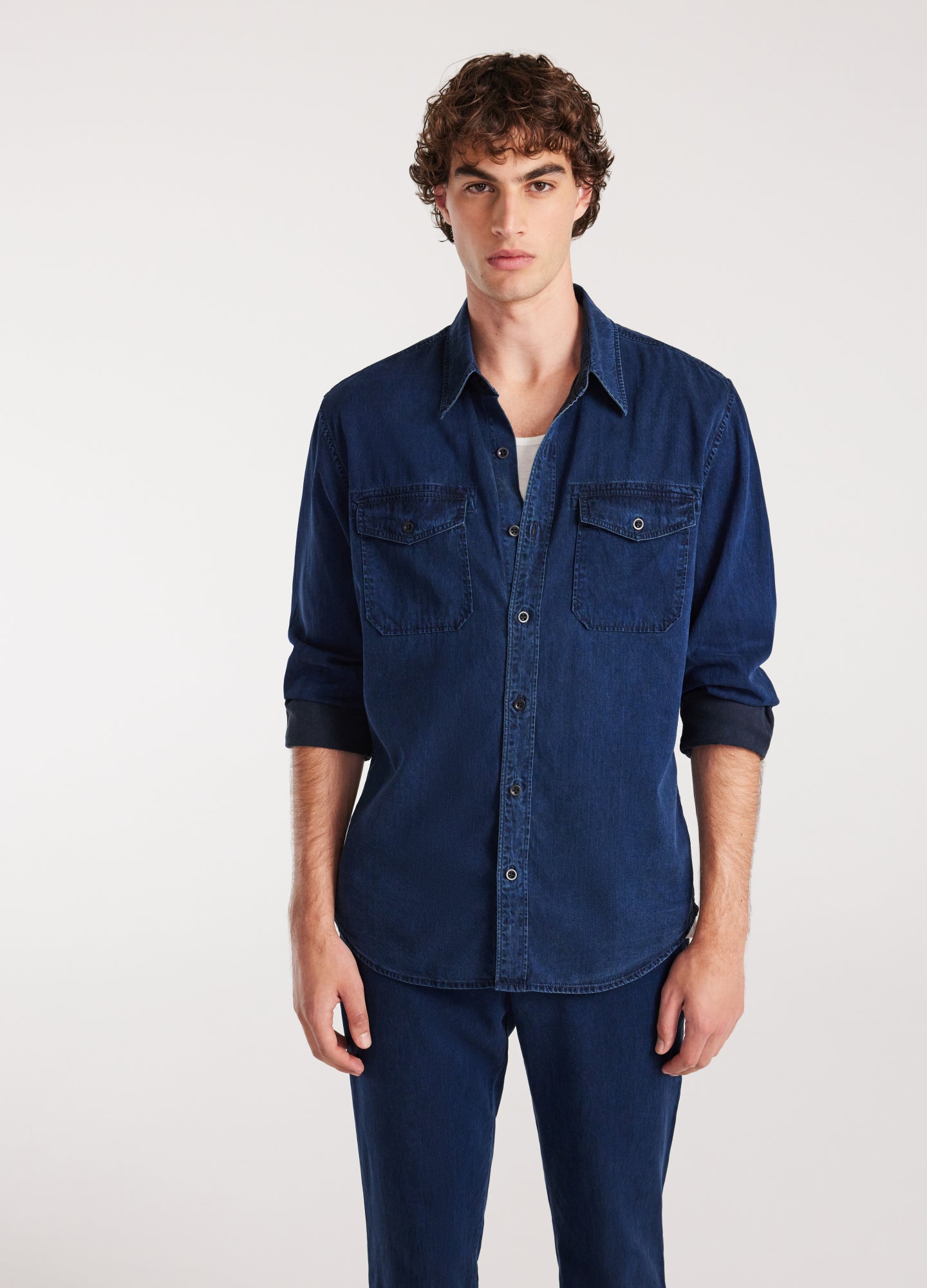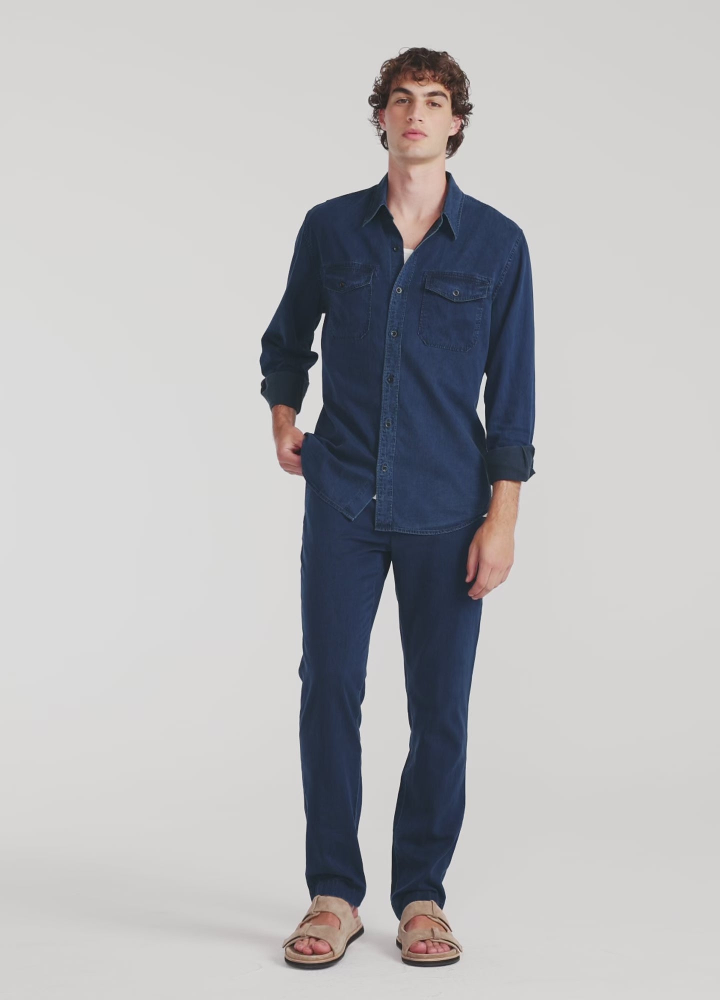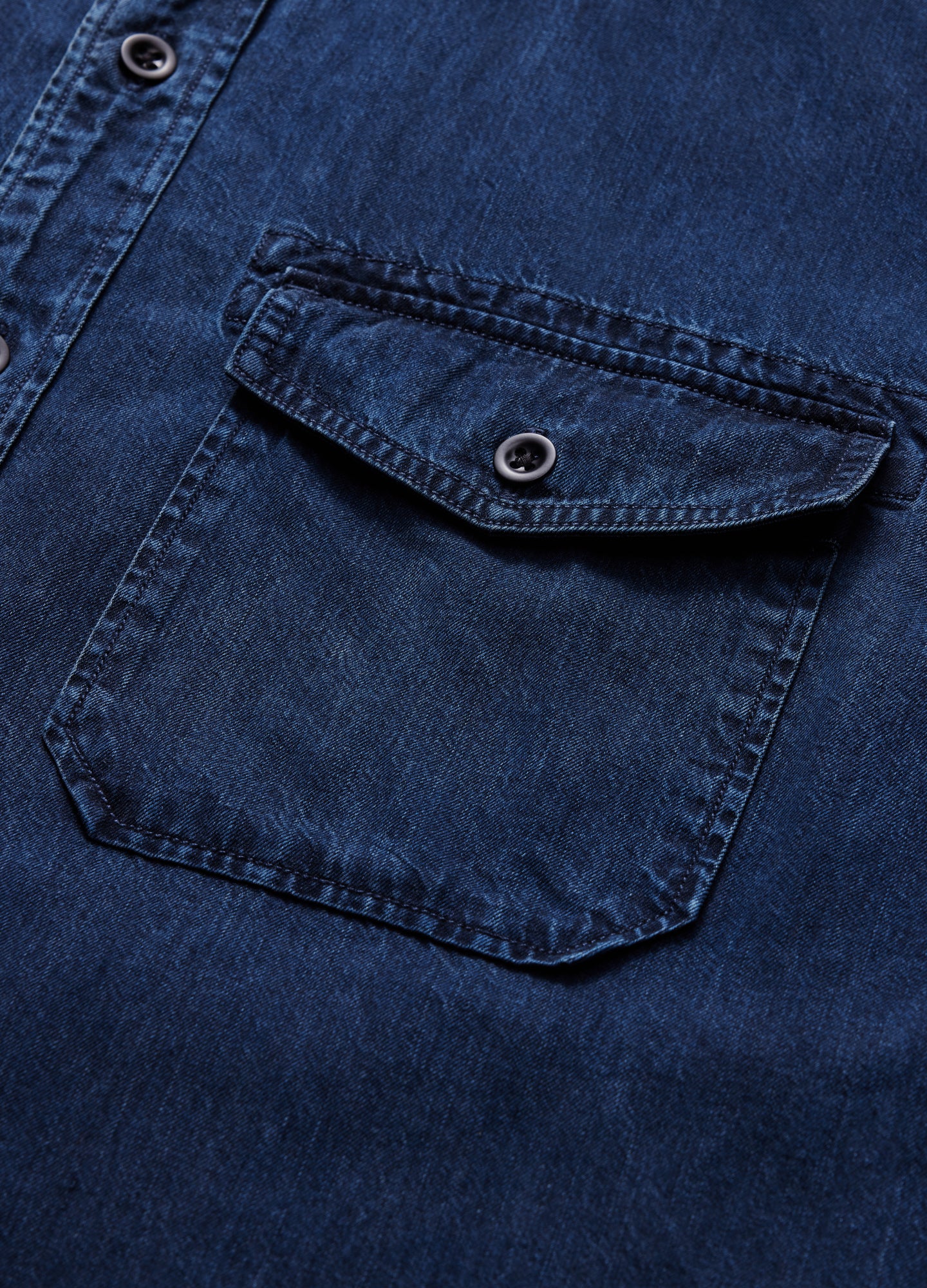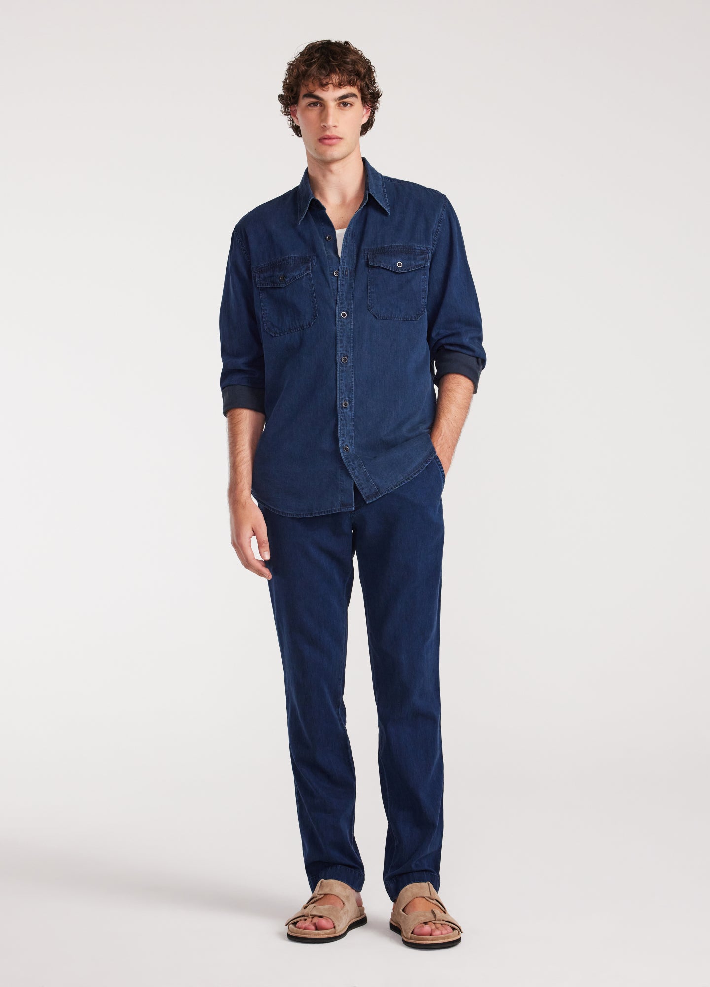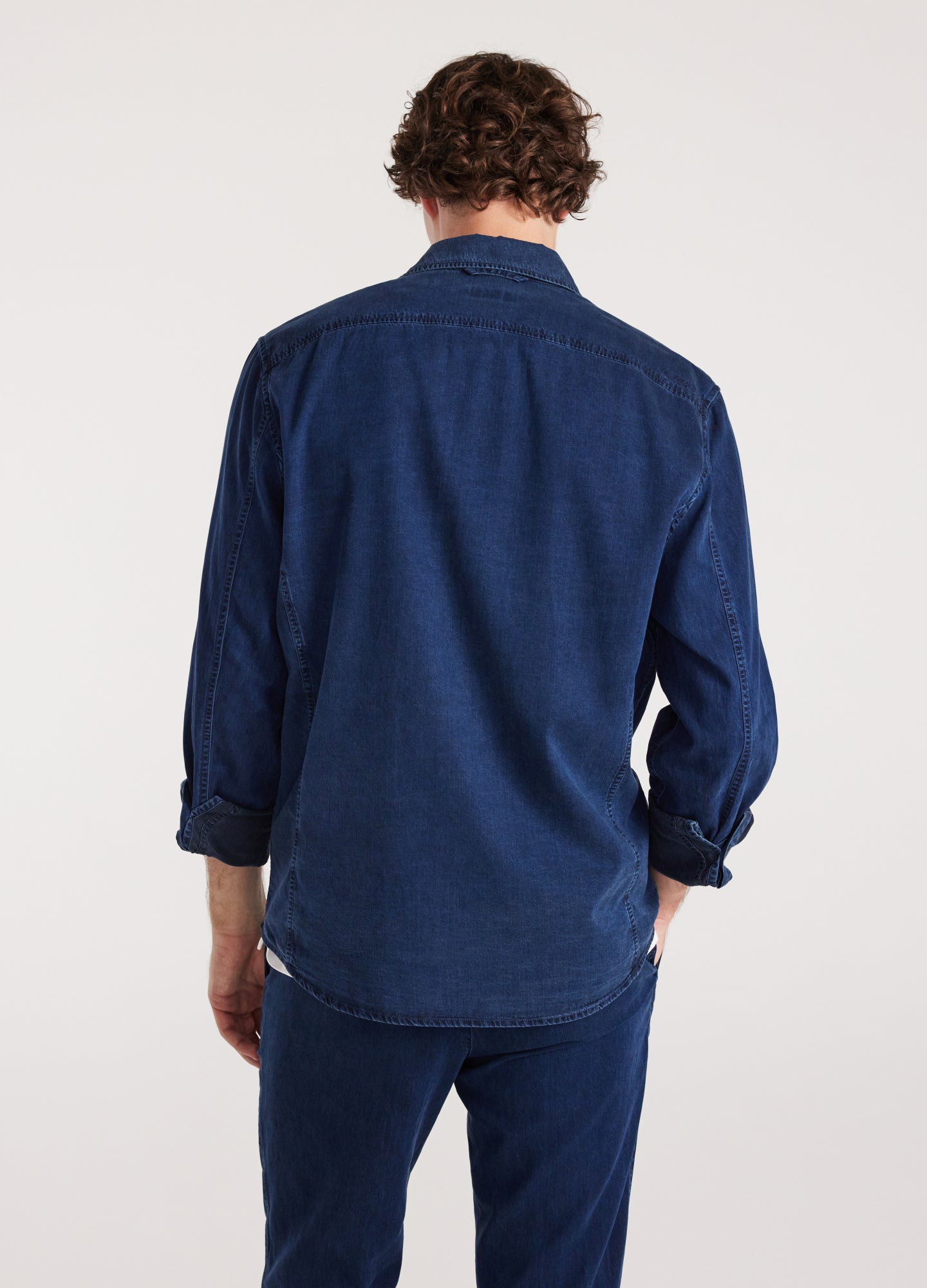 - A fluid indigo dyed tencel and cotton blend twill fabric