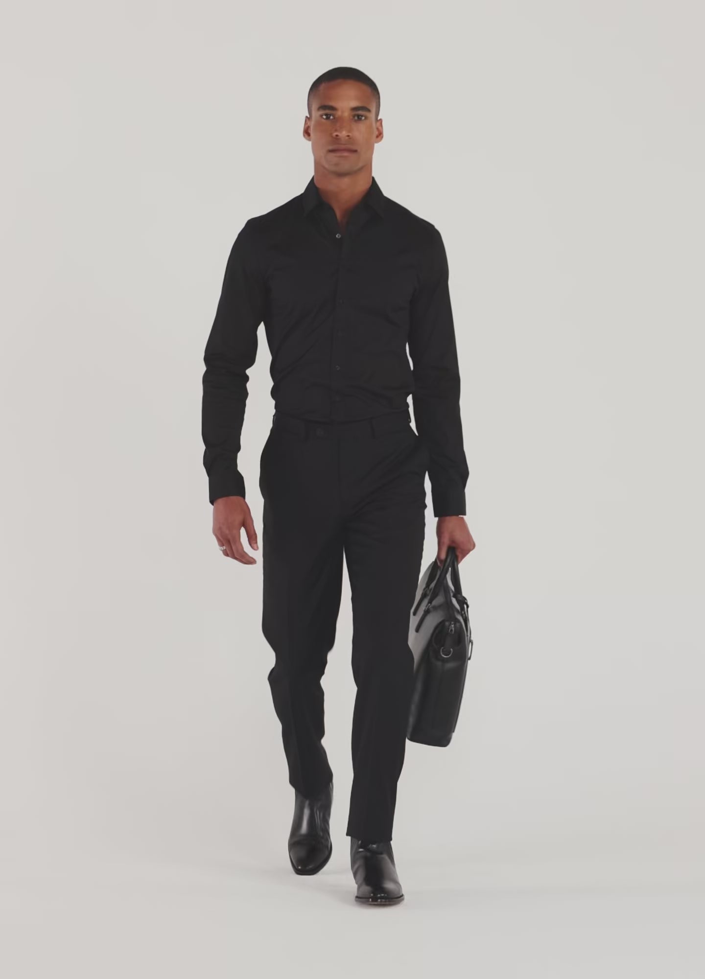 Stretch fit. Slim at waist. For a more regular fitting body, try a size up.