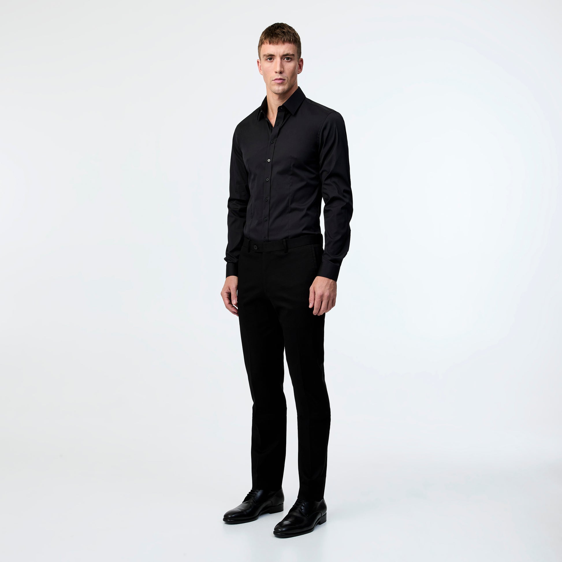 - Pointed collar with fixed bones (can be worn open or with a tie)