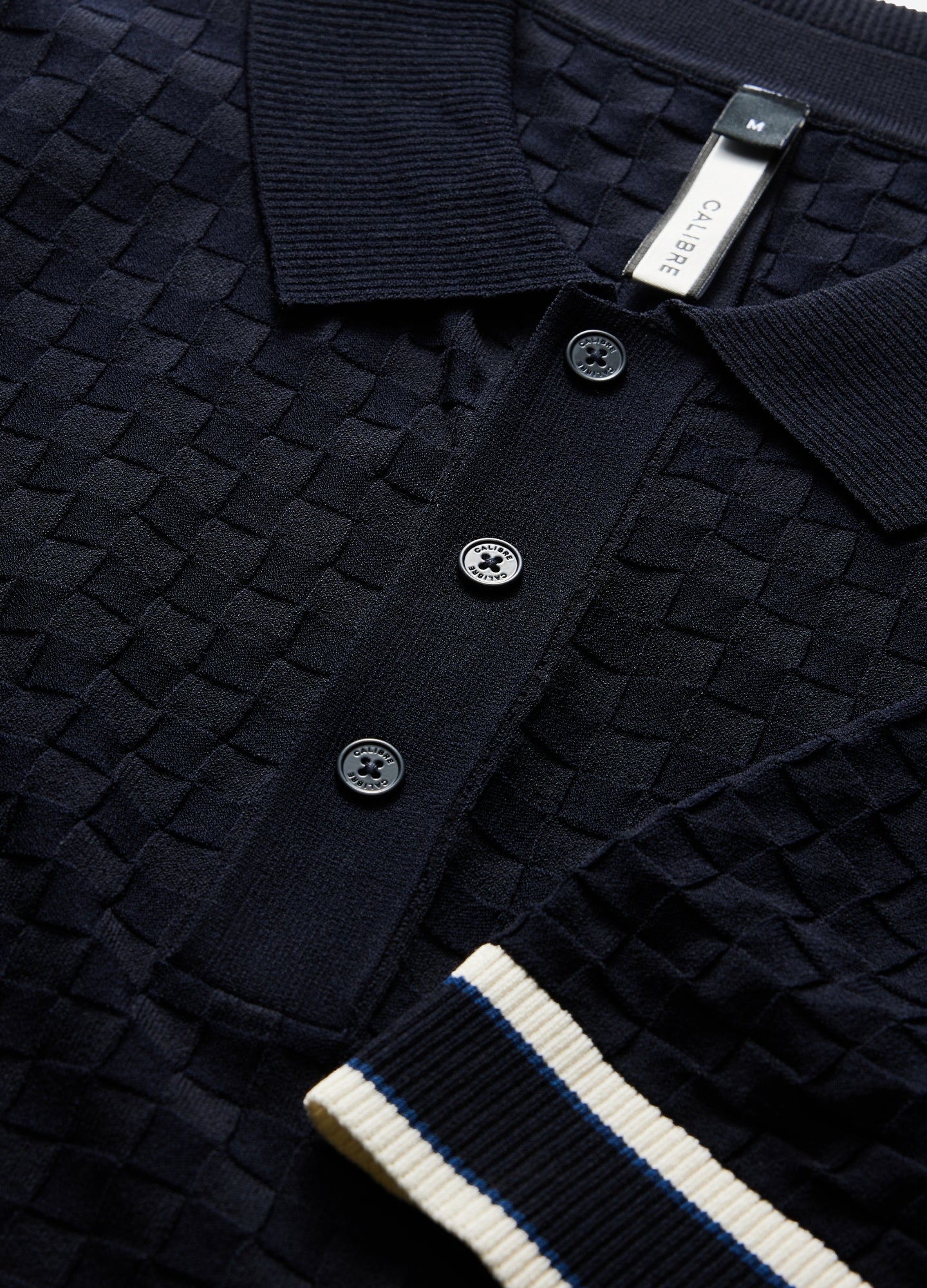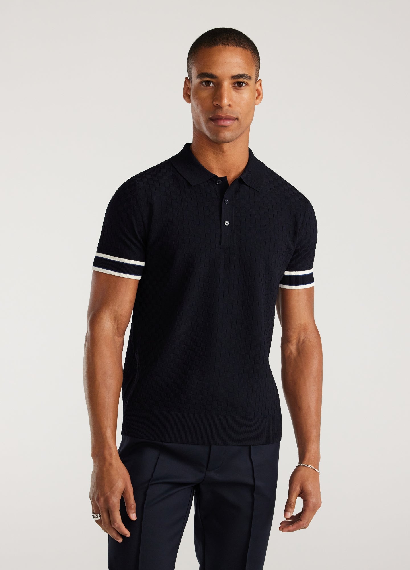 A CALIBRE classic reinvented for the modern man, the Striped Cuff Texture Knit Polo is a year-round staple. Crafted from our signature tech yarn and accented with a textured check pattern, it adds a sophisticated edge to your work to weekend wardrobe.