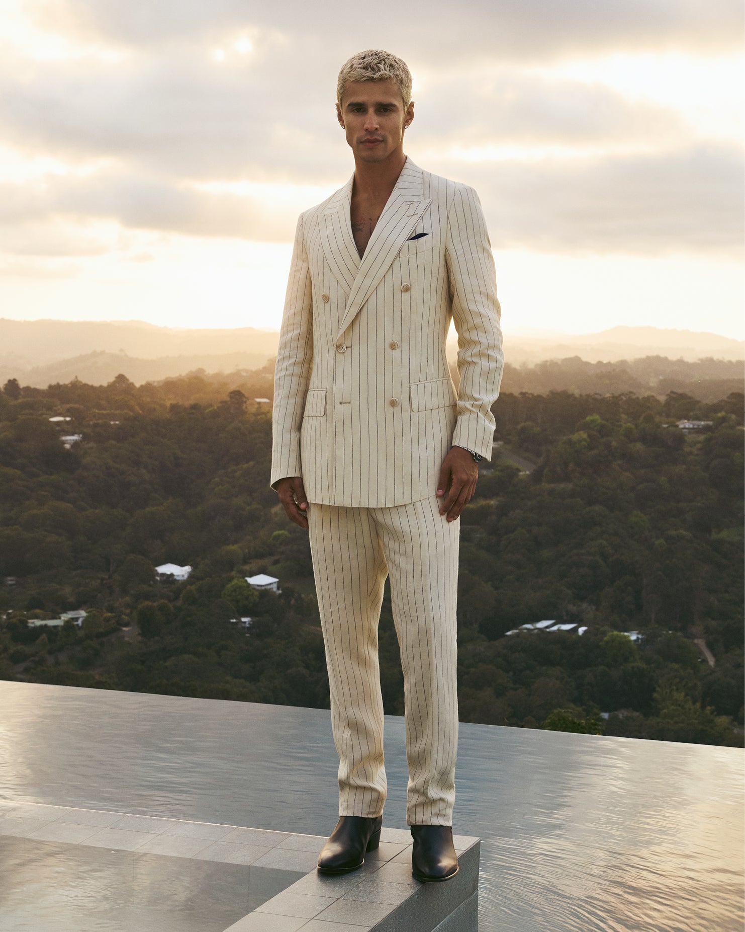 Striped Double-Breasted Suit Jacket Bone