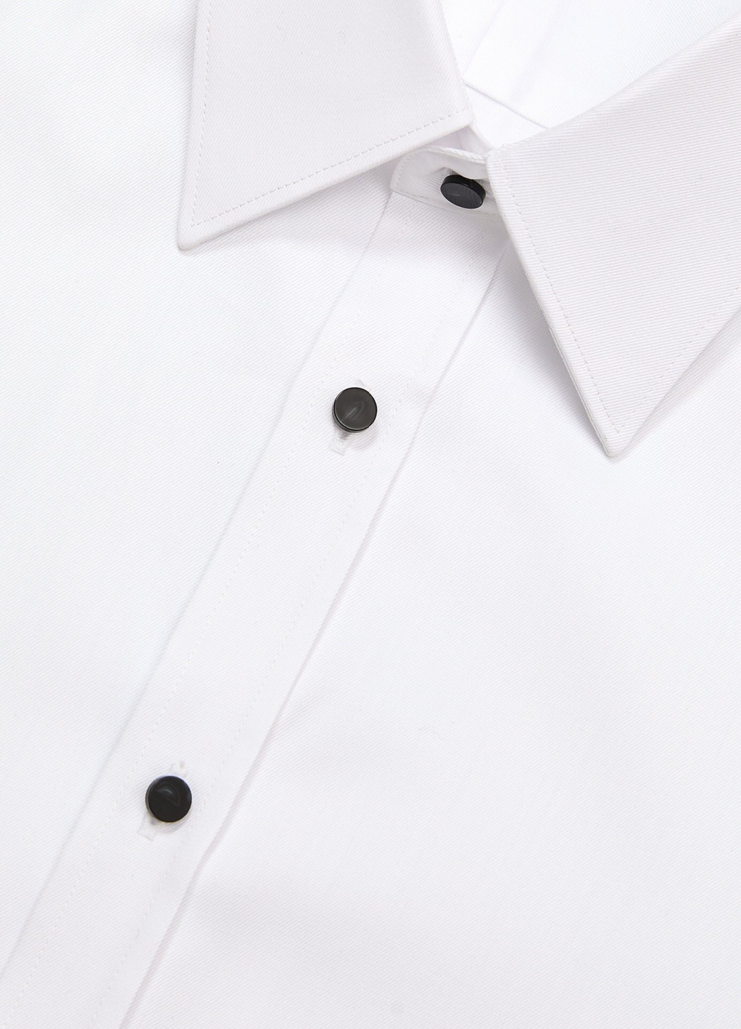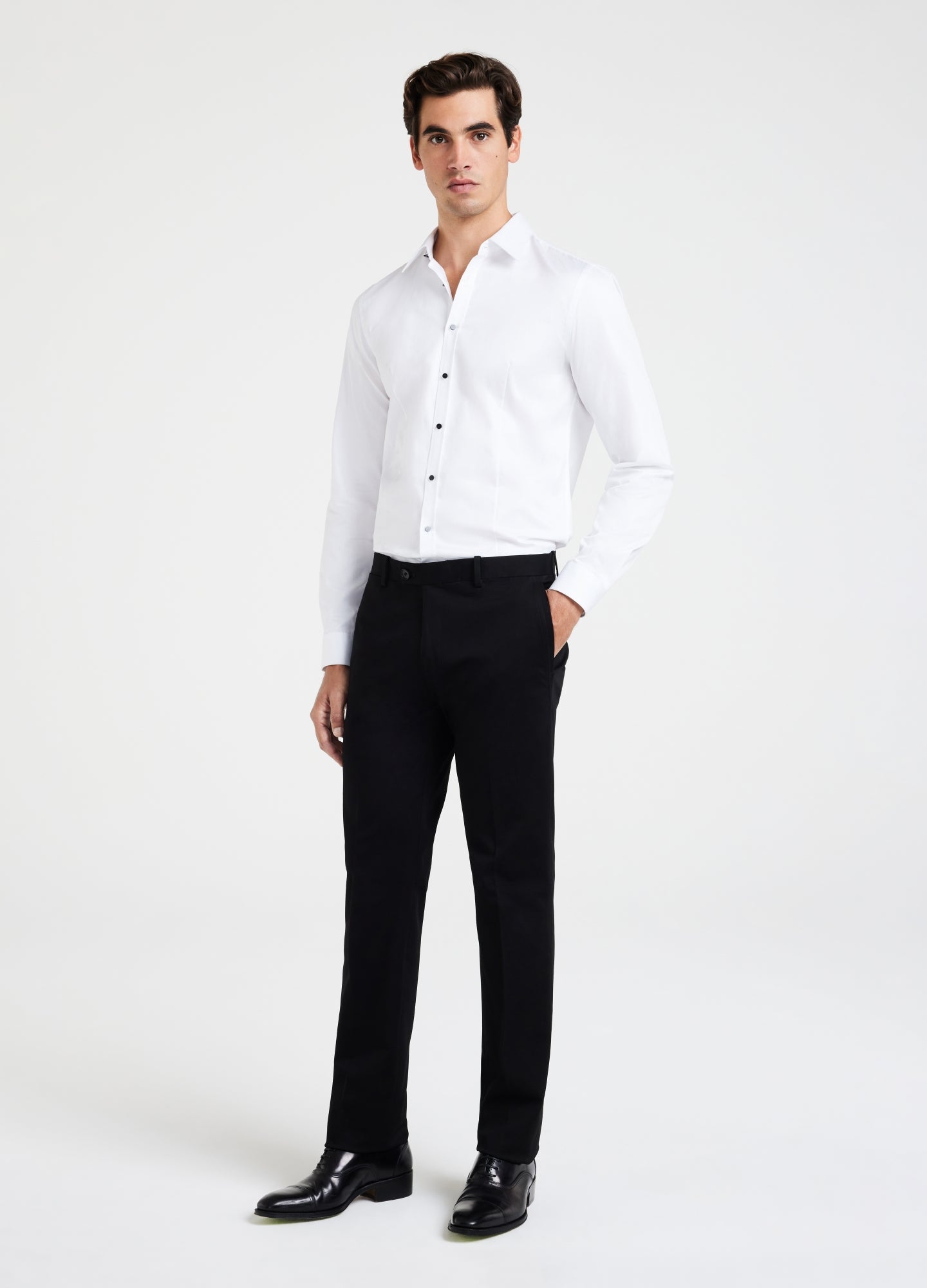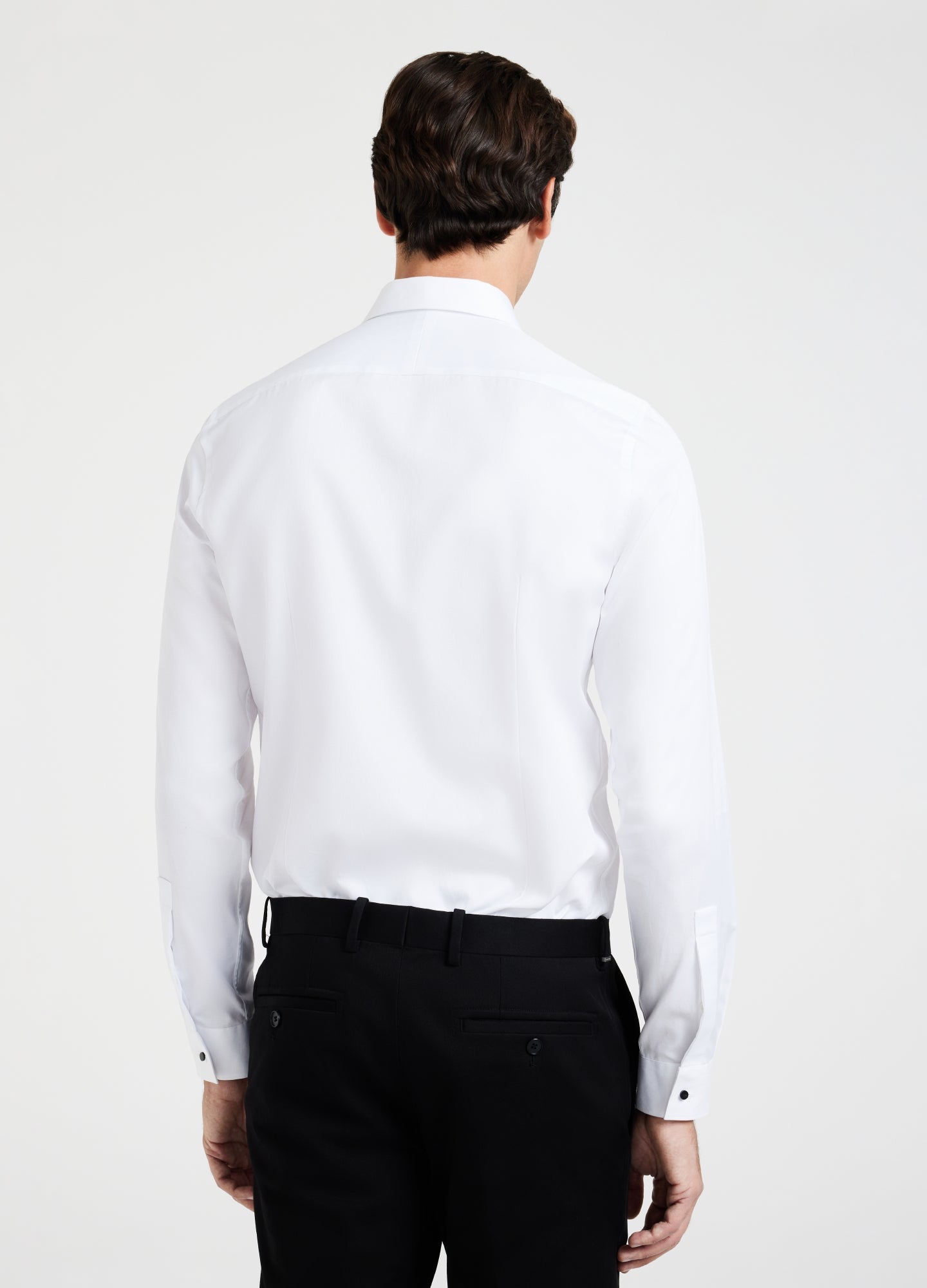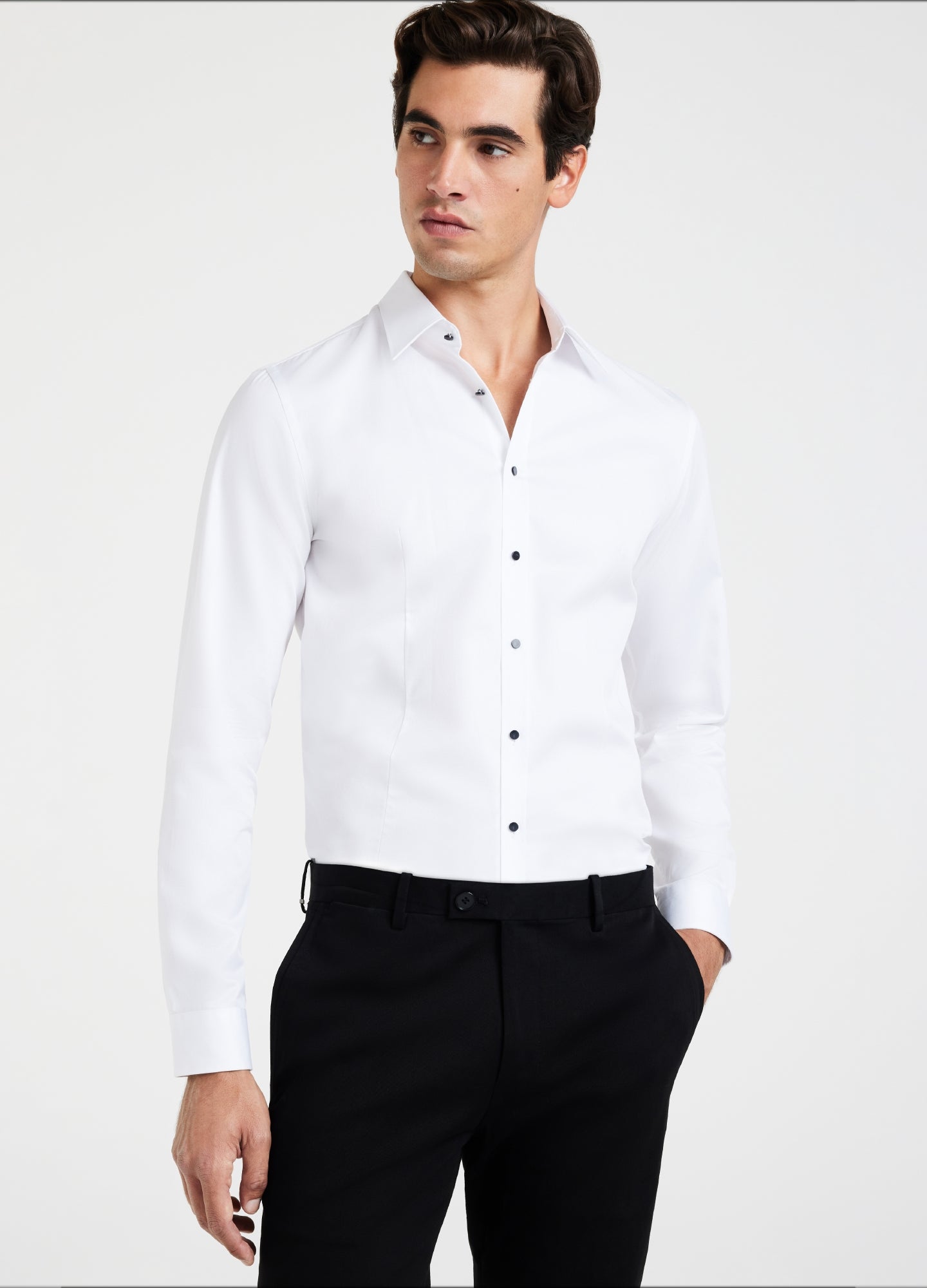 - Point collar with removable collar-bones (can be worn open or with a tie)