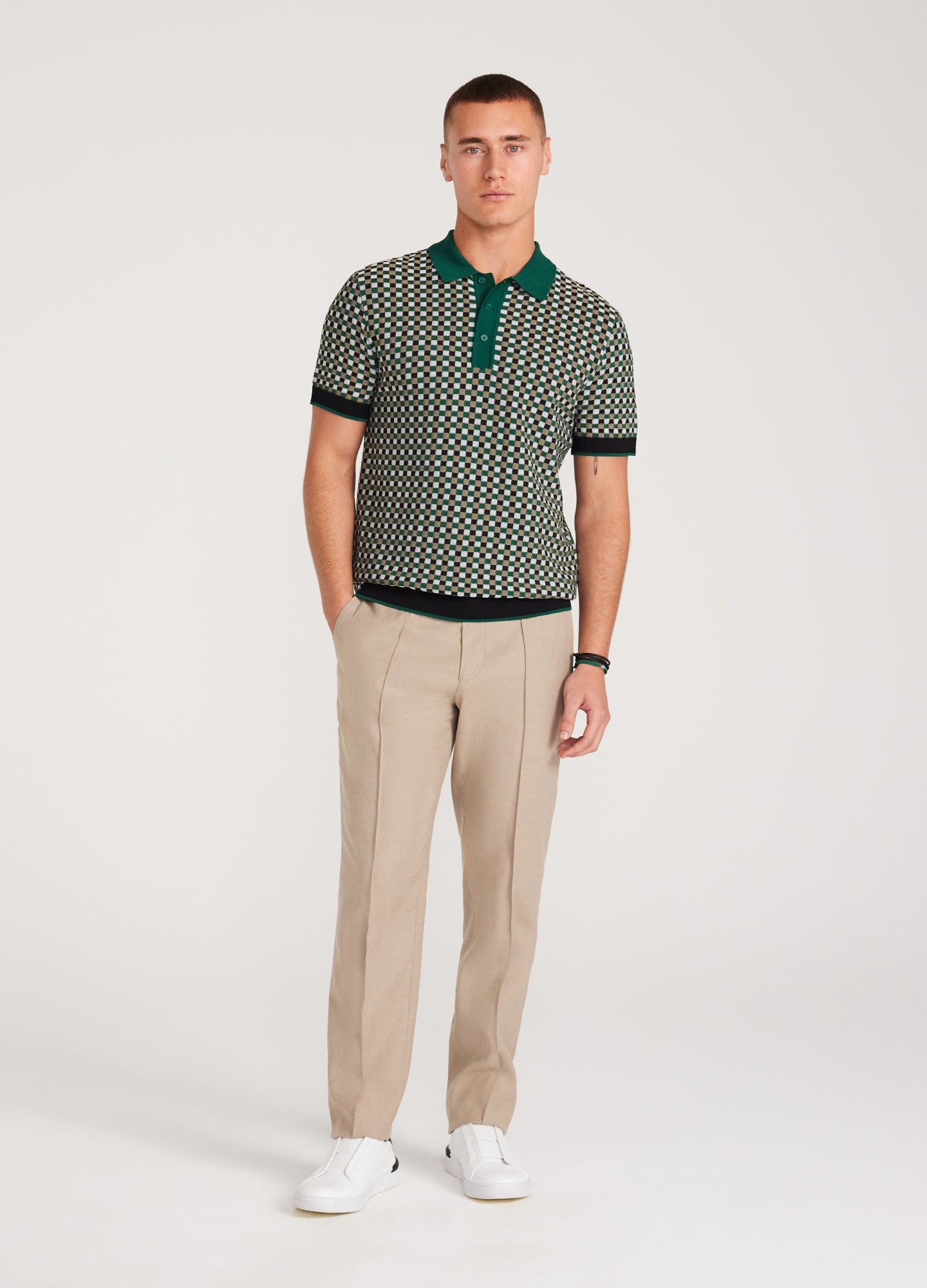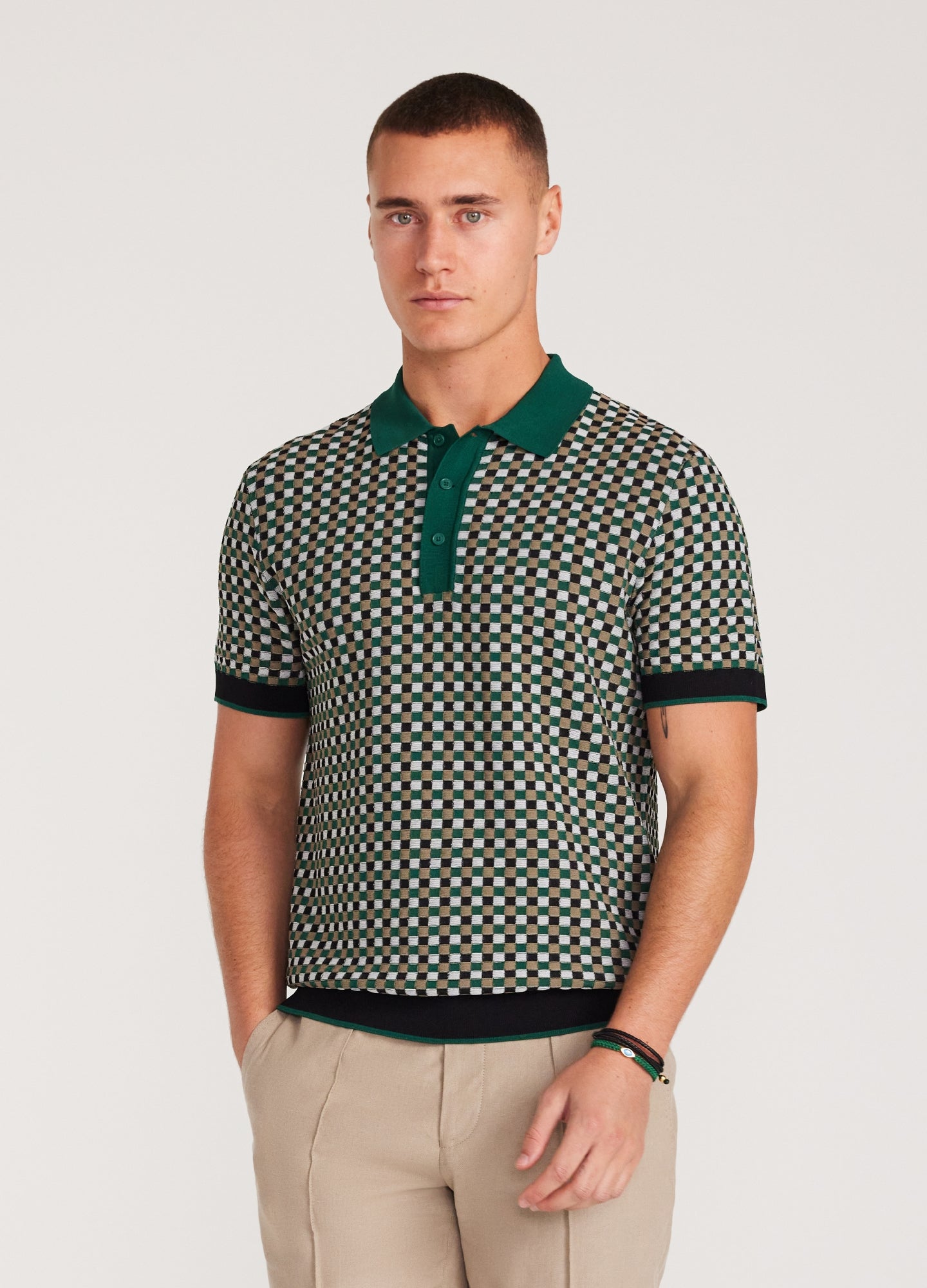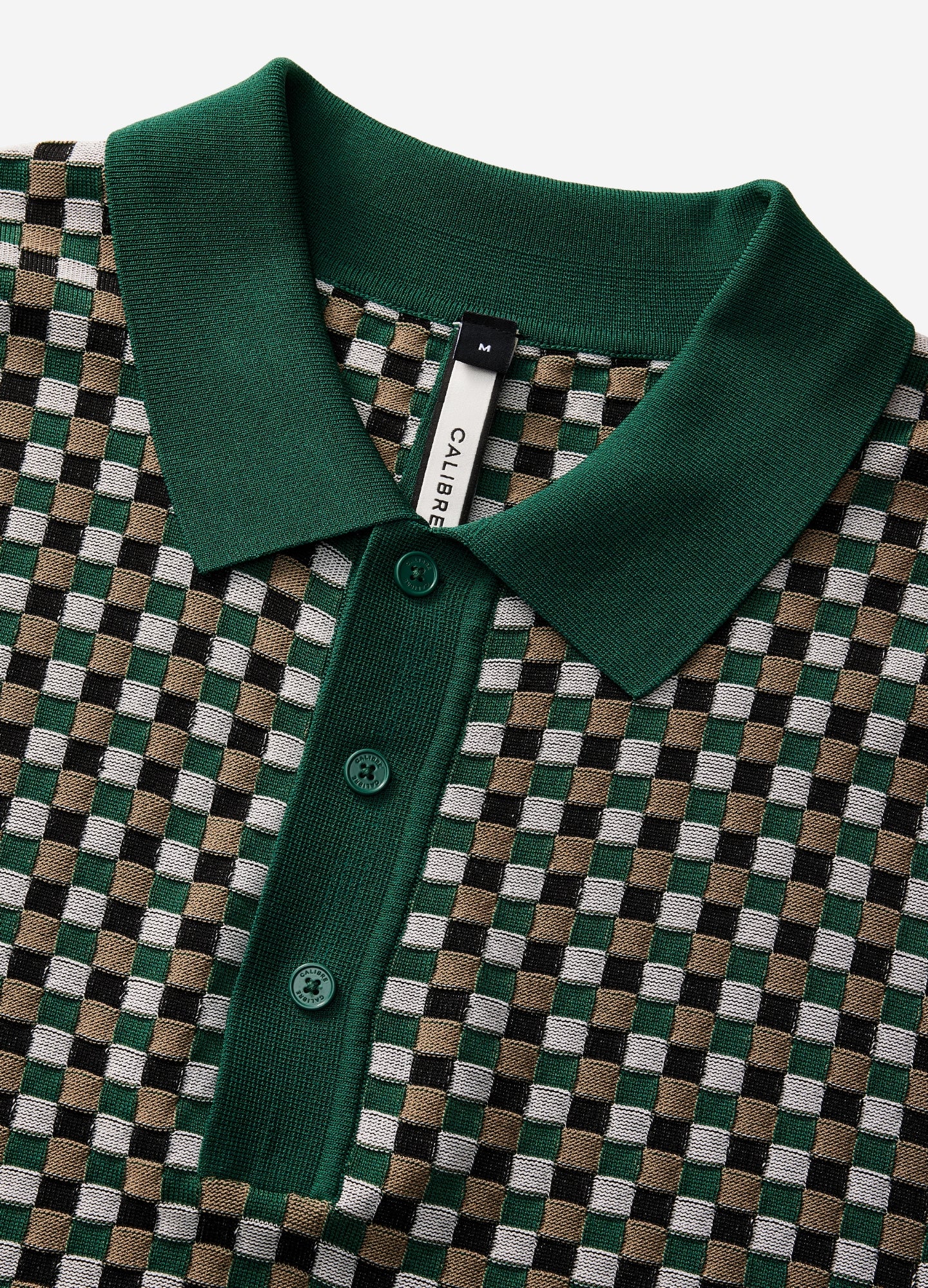 Textured Check Knit Polo Green