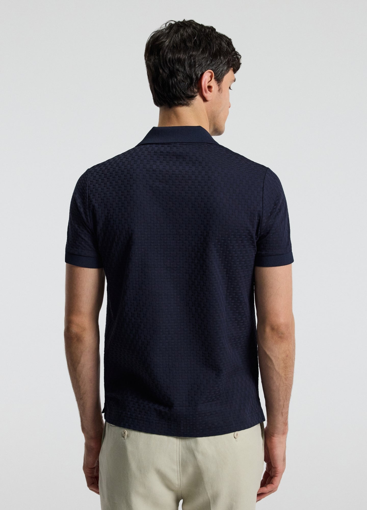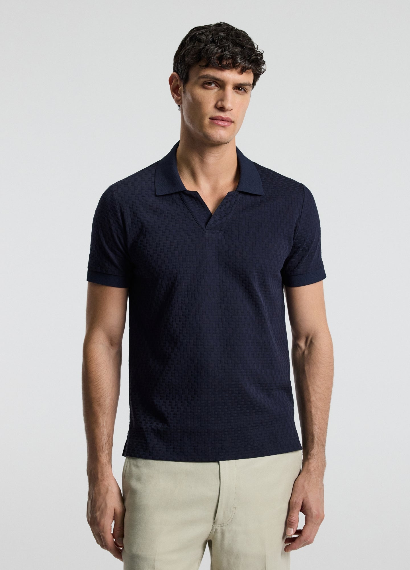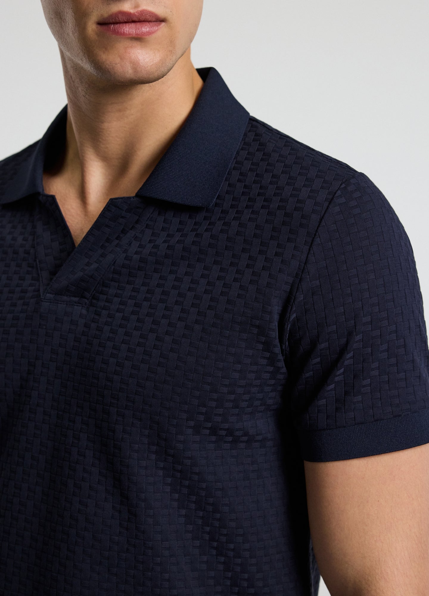 Textured Open Neck Polo Navy